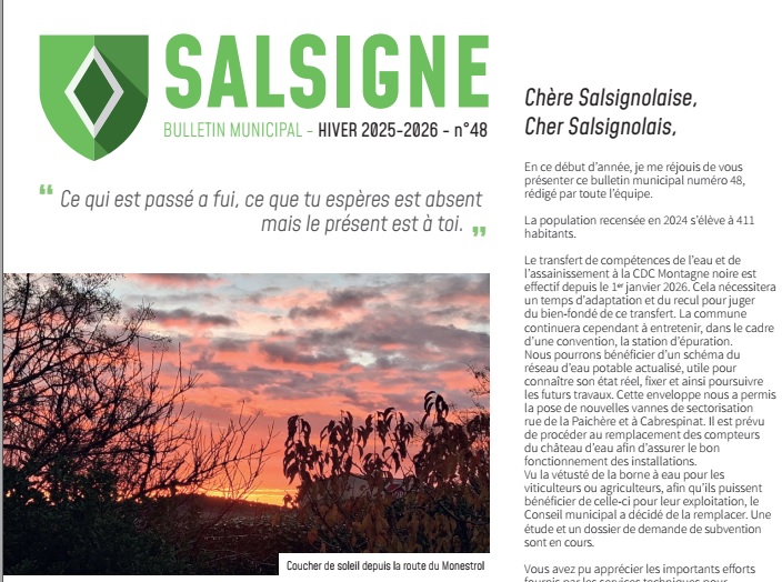 SALSIGNE BULLETIN MUNICIPAL N°48 – JANV 2026   Continue reading